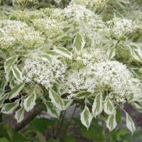 Дёрен пагодообразный Cornus controversa Marginata Nord - листопадный высокий кустарник или небольшое, очень декоративное дерево с горизонтальной многоярусной кроной. Высотой 2 м и с возрастом столько же в ширину.