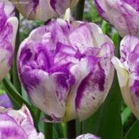 Представляем вашему вниманию эффектный, необычный и в то же время сказочно нежный цветок – тюльпан Дабл Ширли. Его крупные махровые бутоны, достигающие в обхвате 8-10 см, имеют необычный окрас – сиренево-белый меланж. Какой цвет преобладает у Дабл Ширли, сказать сложно. На фоне белоснежного покрывала хаотично разбросаны легкие мазки сиреневой дымки. На первый взгляд тюльпаны этого сорта кажутся хрупкими и беззащитными. На самом же деле все не так!